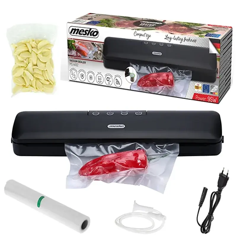 З цією моделлю отримуєш рулон рифленої плівки, хоча гаджет може працювати й з окремими пакетами. А ще це 2 в 1 — вакууматор та запаювальник фольги. Електричний прилад потужністю 95 Вт має ще й окрему функцію запаювання без вакууму — зручно для швидкого пакування. Увесь процес займе від 20 секунд до 1 хвилини. Лаконічний дизайн і надійна функціональність роблять його чудовим вибором для щоденного використання.