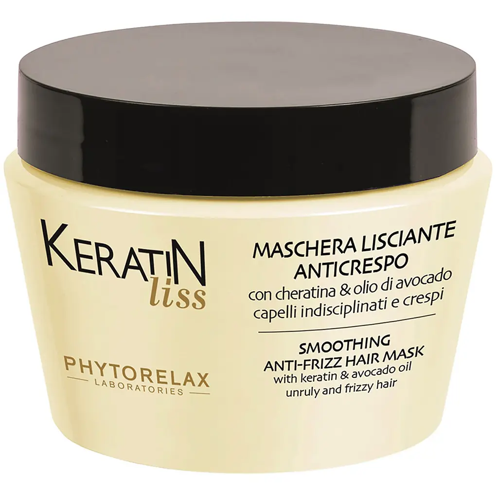 Італійська маска Phytorelax з кератином та олією авокадо — порятунок для посічених кінчиків і слабкої довжини. Для кращого ефекту кератин використовується у гідролізованій формі, а олії забезпечують якісне зволоження та живлення.