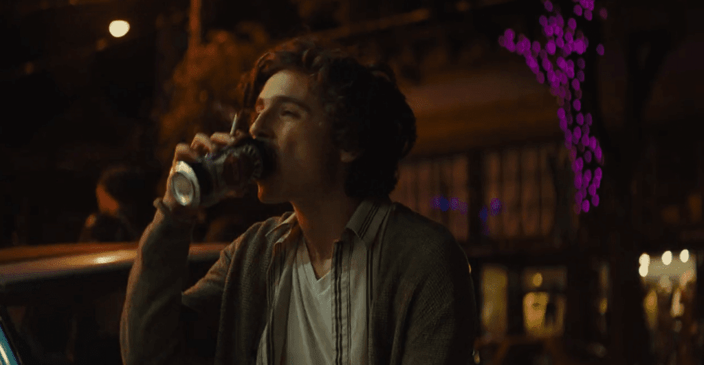 У цьому фільмі з алкоголем герой Шаламе зʼявляється в кадрі лише раз — коли пʼє пиво, опершись на своє авто. Після цього він знайомиться з дівчиною, з якою вирішує провести вечір і сідає за кермо. Наголошуємо, що цю поведінку кіногероя не можна повторювати в жодному разі!