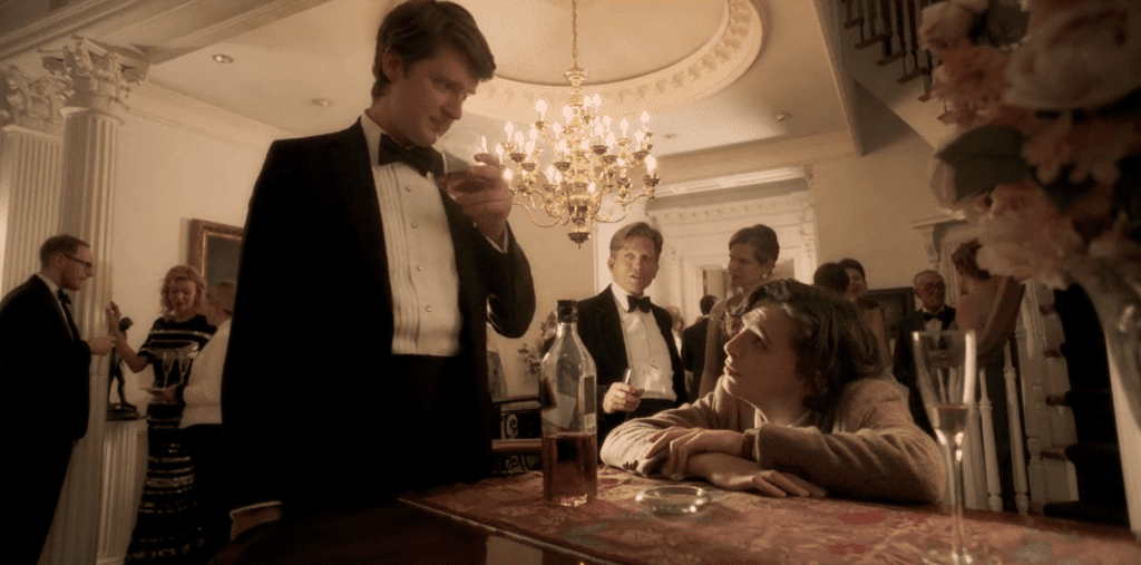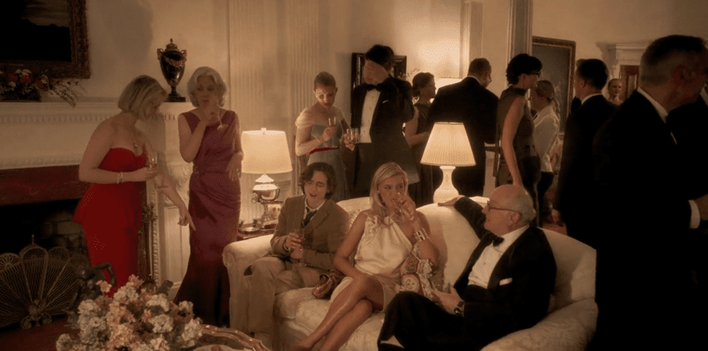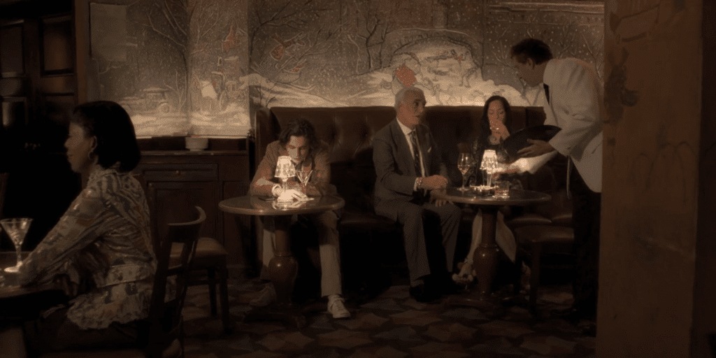 У наступній сцені Шаламе сидить у барі та сумно потягує коктейль із келиха мартіні. «Запропонувати вам ще одну?» — турботливо цікавиться офіціант, на що Гетсбі відповідає: «Так, подвійну». Ймовірно, мова йде про порцію коктейлю Мартіні або ж Манхеттен, який готують на основі віскі.