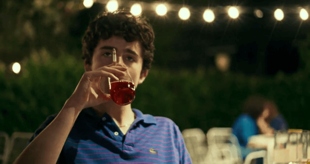 У цьому фільмі ми бачимо Шаламе з алкоголем лише один раз — на першій вечірці в новому місті, куди його герой, сором’язливий хлопець Деніел нещодавно переїхав. Судячи з кольору напою, який у наступні миті вилився із цього келиха, він смакував легке світле пиво.