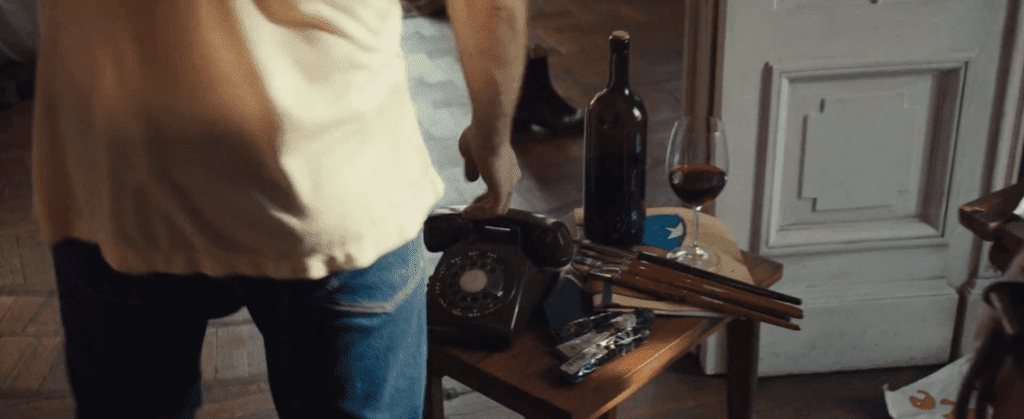 Серед частувань дівчині подають м’ясо, а до нього — рожеве вино, схоже що з бульбашками. Враховуючи, що історія розгортається у Франції, це шампанське або креман розе. Креман — це французькі ігристі вина з Долини Луари.