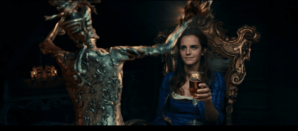 У фільмі ми бачимо Белль із наповненим келихом лише раз — коли зачаровані слуги замку запрошують її до першої вечері та співають на честь своєї шанованої гості, на яку покладають великі надії.